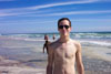 Today I went to the Cherry Grove beach on Fire Island with friends. Getting there was quite an expedition that required two trains, a shuttle van, and a ferry. When we arrived with the hot sun beating down on us, I think we all appreciated that this really was the perfect day. And then the cold water sloshed over the bank and soaked our towels! The ocean was swirling crazy today because of a hurricane off shore and the waves were taking over the beach. We retreated to the weeds and lay down our things among tampon applicators and old boards with nails in them. Once we were set up, two of the more industrious members of our group started to work on building a barrier made of sand and debris. While they had no tools to work with , we were lying near an older man with a handlebar mustache who was working on his own tool quite fervently, sitting on a striped beach chair next to a woman who had to be someone other than his wife. He wasn't exactly jerking off, but more fluffing it to make it look bigger. Or something. By the end of the day I felt relaxed, a little red and sleepy, and ready for a wild night! I only hope I don't have this awful farmer's tan anymore!