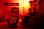 ominous, dark clouds) and I ended up leaving in a hurry for fear of being trapped there for days and missing work. Tan aside, the trip was worth it just to see my grandma's latest decorating, which includes an entire addition to her house. It's a "fun room," as she says, and it's filled with whimsical furniture and Erte drawings in expensive frames. Sitting on her new red leather sofa made me want to eat cheese and crackers, pet the cat, and throw a murder mystery dinner party.